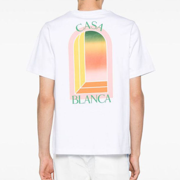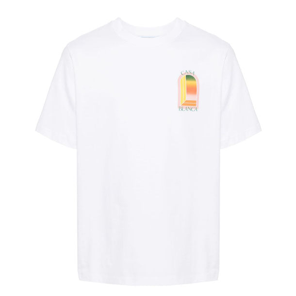 The Gradient L'Arche t-shirt is a short-sleeve design featuring the arch print in a gradient colourway of warm yellow, orange, pink and green, representative of the rich exchanges across cultural disciplines in African art, music and film. Crafted from organic cotton, complete with a classic crew neck and designed for a relaxed fit.