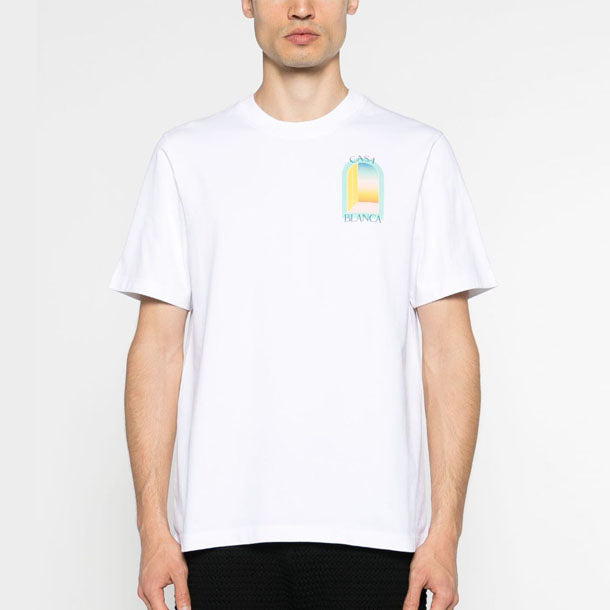 The Larc Colore T-Shirt is a short-sleeve design featuring the house's signature arch print in a pastel gradient. The colour palette for this collection is light and idealistic, emphasising ethereal themes core to our brand. Crafted from organic cotton and complete with a classic ribbed crew neck.