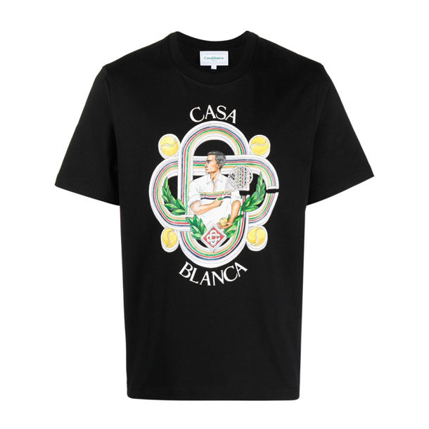 The Le Joueur screen-printed organic cotton t-shirt features seasonal artwork incorporating the house's signature tennis iconography. Completed with a classic crewneck, short sleeves and Casablanca Paris branded label, designed for a relaxed fit.